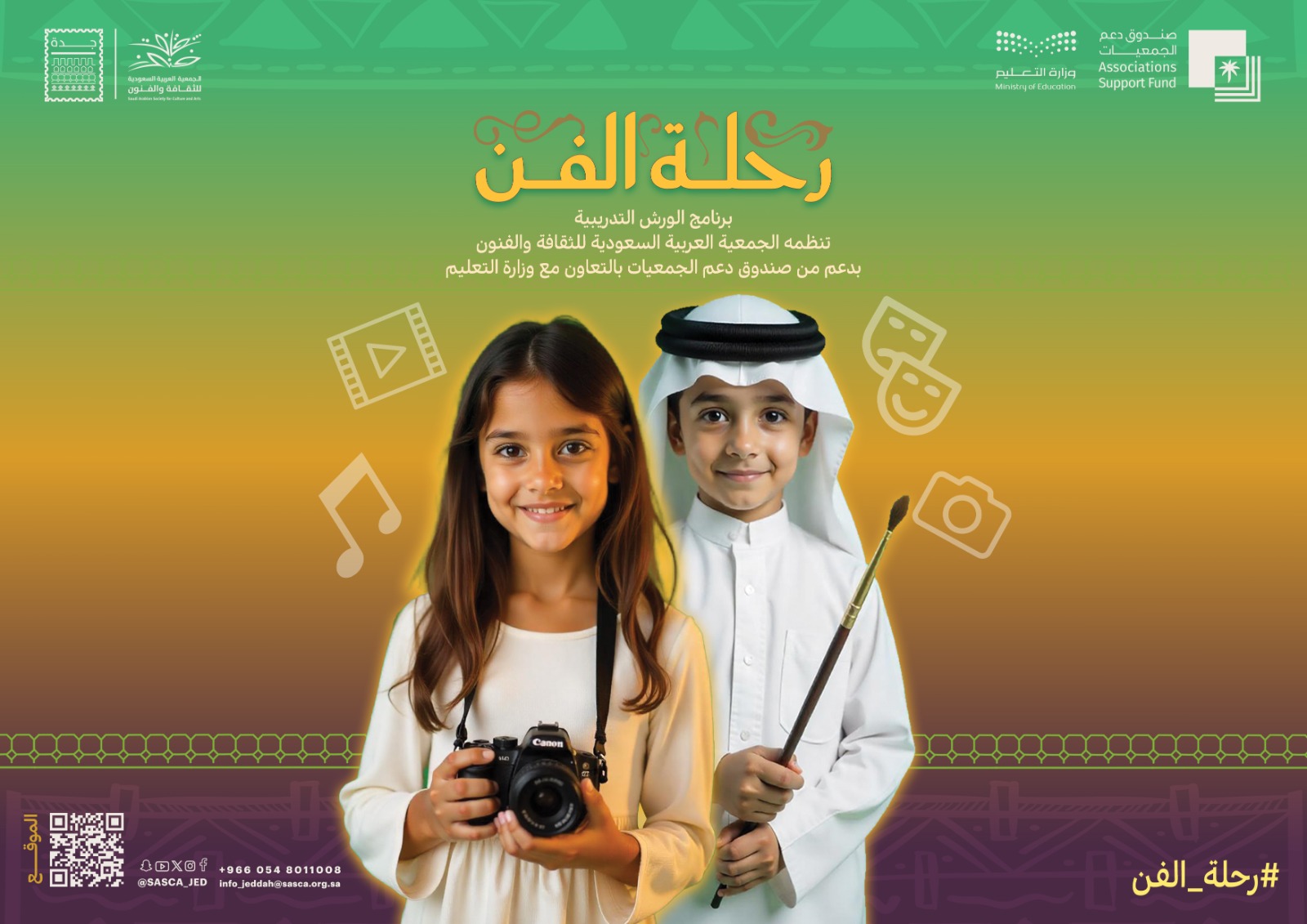 تنظم الجمعية العربية السعودية للثقافة والفنون؛ بالتعاون مع وزارة التعليم، وصندوق دعم الجمعيات بوزارة الثقافة، برنامج “رحلة الفن” الذي تقدم من خلاله عدداً من الورش التدريبية الفنية، مستهدفة ٣٦٠ طالباً وطالبة في إدارات التعليم بمدن الرياض والدمام وجدة، على مدى خمسة أيام في الفترة من ١٨ إلى ٢٢ مايو الجاري.